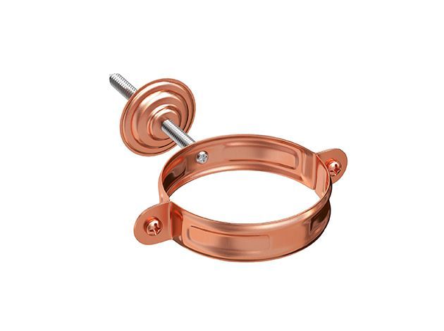 Хомут с комплектом крепления предназначен для надежной фиксации водосточного стояка на фасаде здания. Изделие выполнено с усилением и ребрами жесткости, что гарантирует прочность и долговечность крепления.