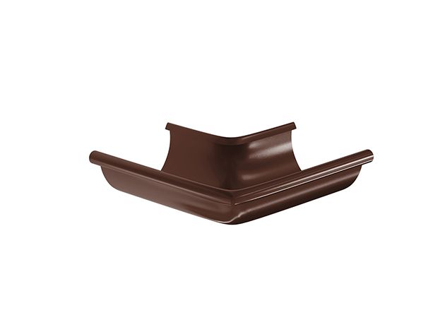 Наружный угол желоба устанавливается на внешних углах кровли и используется для изменения направления движения воды в водосточной системе. Конструкция обеспечивает надежное соединение желобов, герметичность и стабильный отвод осадков даже при сильных дождях.